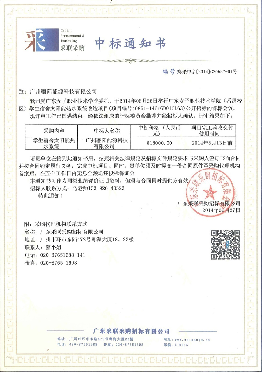 廣東女子職業(yè)技術(shù)學(xué)院學(xué)生宿舍太陽(yáng)能熱水系統(tǒng)